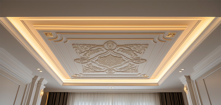 Decorative ceilings are designed to enhance the aesthetic appeal of interior spaces, often incorporate ornate moldings, coffered designs, and custom artwork.